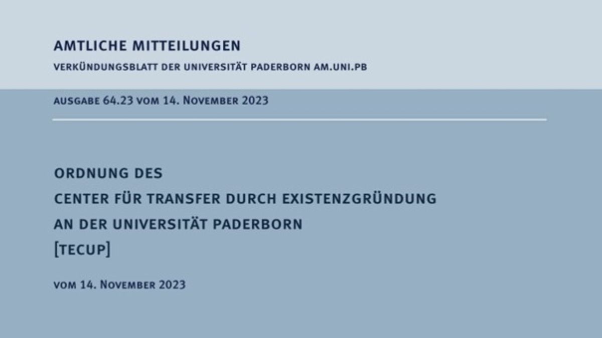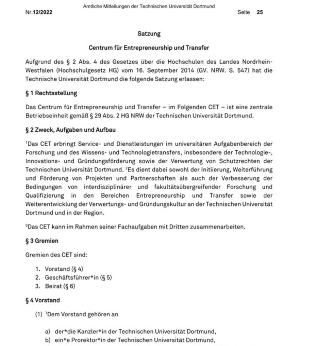 Ordnung des Center für Transfer durch Existenzgründung an der Universität Paderborn
