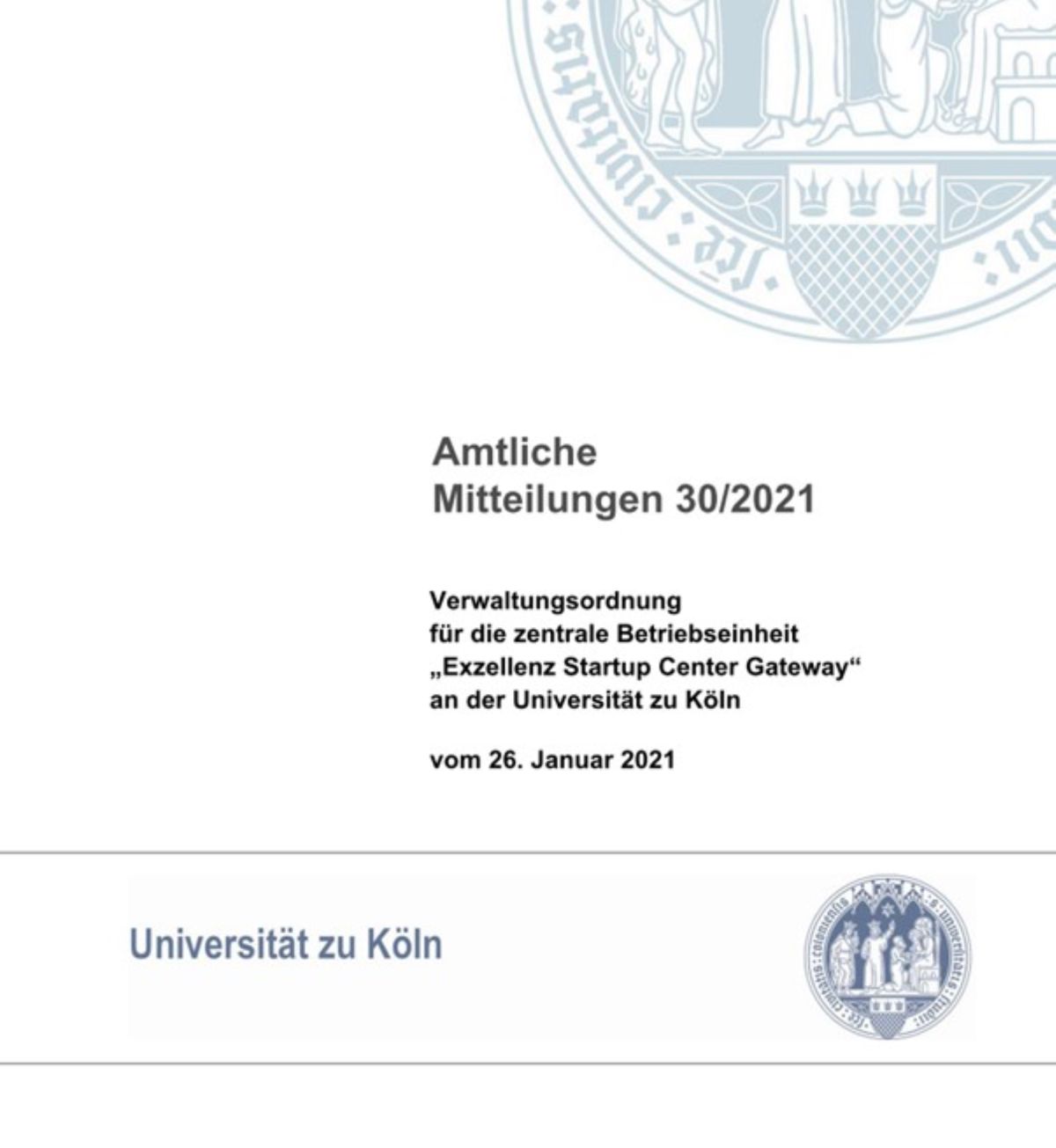Verwaltungsordnung für die zentrale Betriebseinheit „Exzellenz Startup Center Gateway“ an der Universität zu Köln