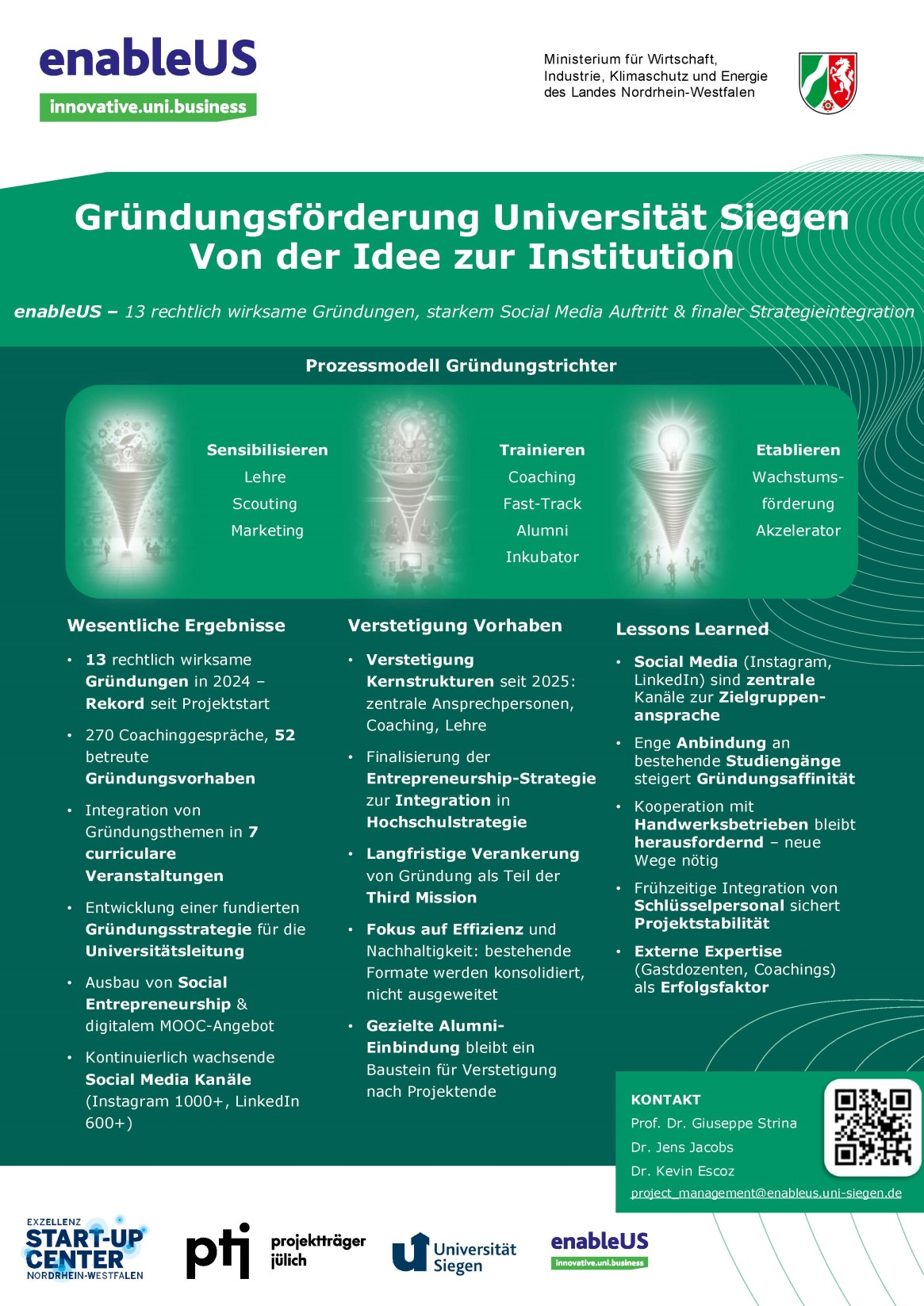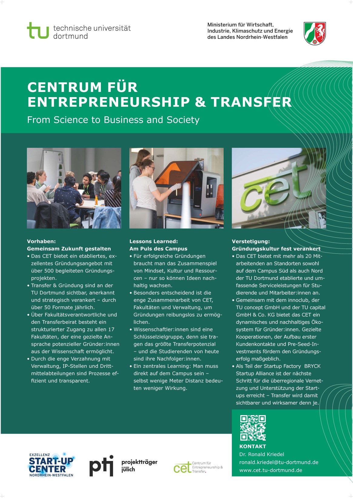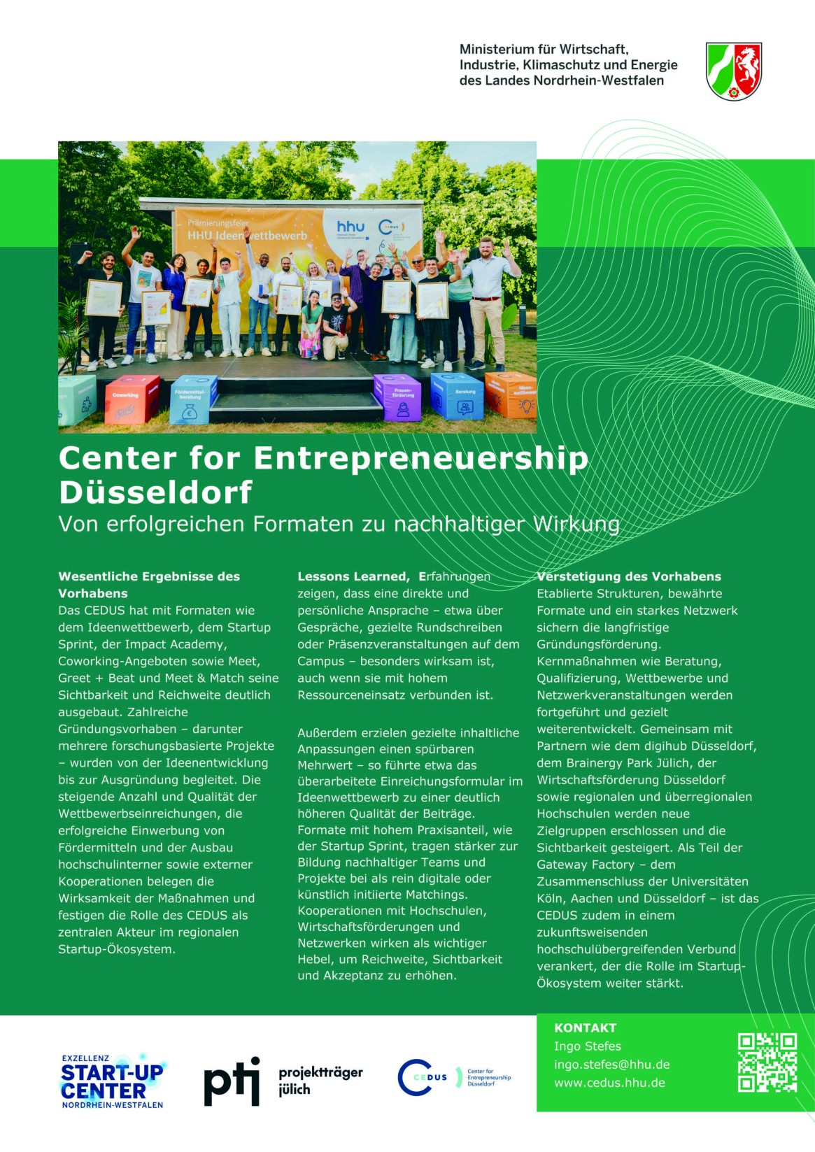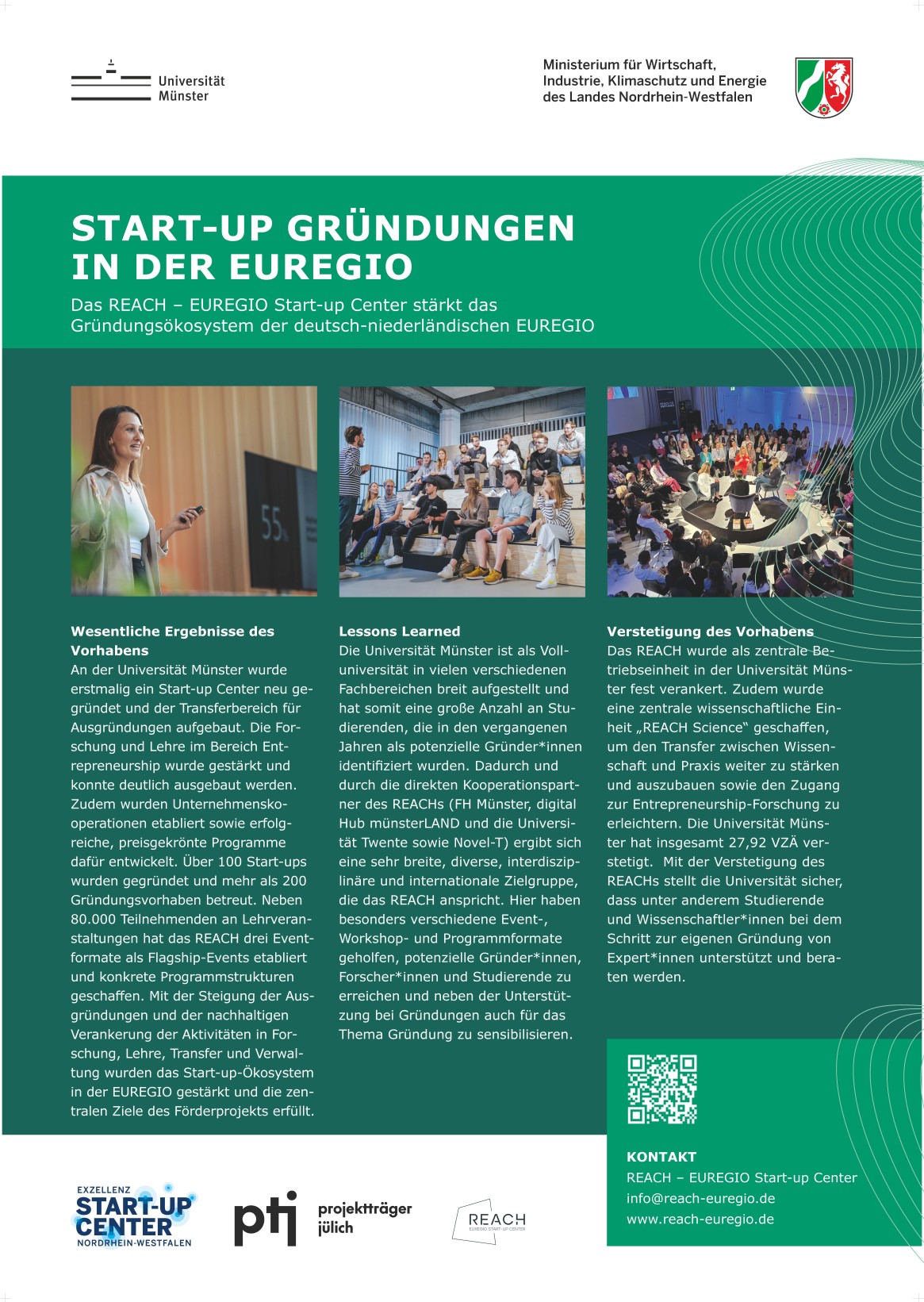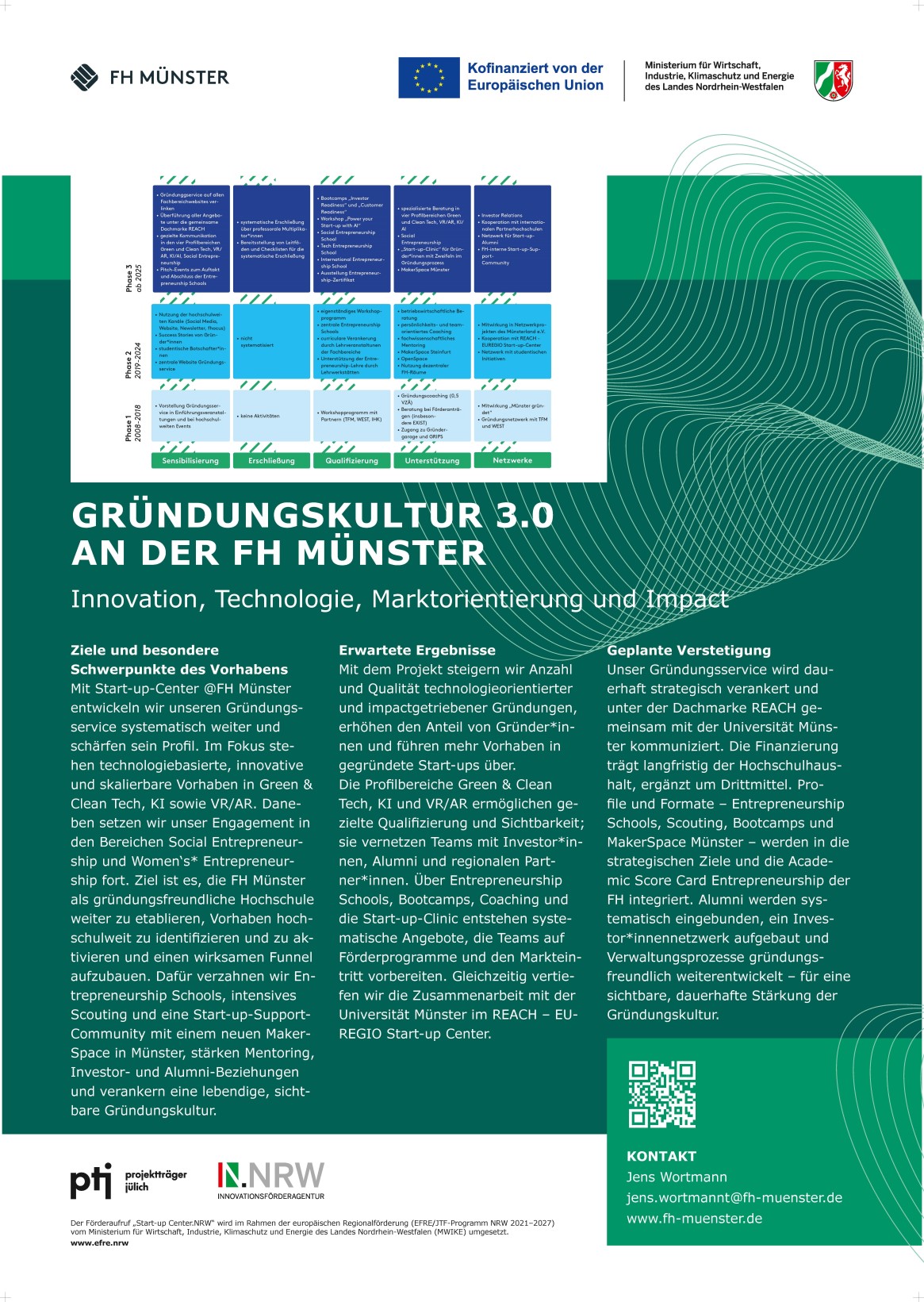 Rund 300 Teilnehmende folgten der Einladung und nutzten die Gelegenheit, den Austausch zwischen den Hochschulen in NRW zu vertiefen und das akademische Start-up-Ökosystem weiter zu stärken. In einer umfangreichen Posterausstellung konnten sie sich ein Bild von den sechs geförderten ESC-Projekten sowie ergänzenden Einzelvorhaben an fünf weiteren Universitäten machen. Ebenfalls vorgestellt wurden die zukünftigen 14 Start-up Center und drei Start-up Fokuszentren, das Programm Start-up Transfer, die Monitoringergebnisse des Stifterverbandes sowie die Qualifizierungs- und Austauschplattform für Hochschul-Coaches „smart-up.NRW“. Die Poster sehen Sie nachfolgend.