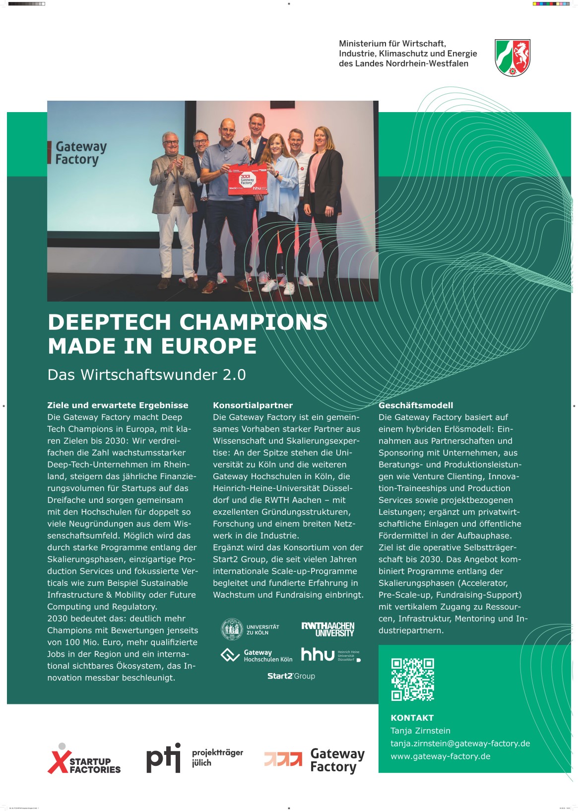 Am 1. und 2. Oktober 2025 versammelte sich die akademische Gründungsszene Nordrhein-Westfalens auf dem EUREF Campus in Düsseldorf. Das Ministerium für Wirtschaft, Industrie, Klimaschutz und Energie des Landes NRW (MWIKE) hatte Vertreterinnen und Vertreter des Hochschul-Start-up-Ökosystems sowie Business Angels, Mentorinnen und Mentoren zum Kongress „Hochschulen als Keimzellen für Start-ups“ eingeladen.